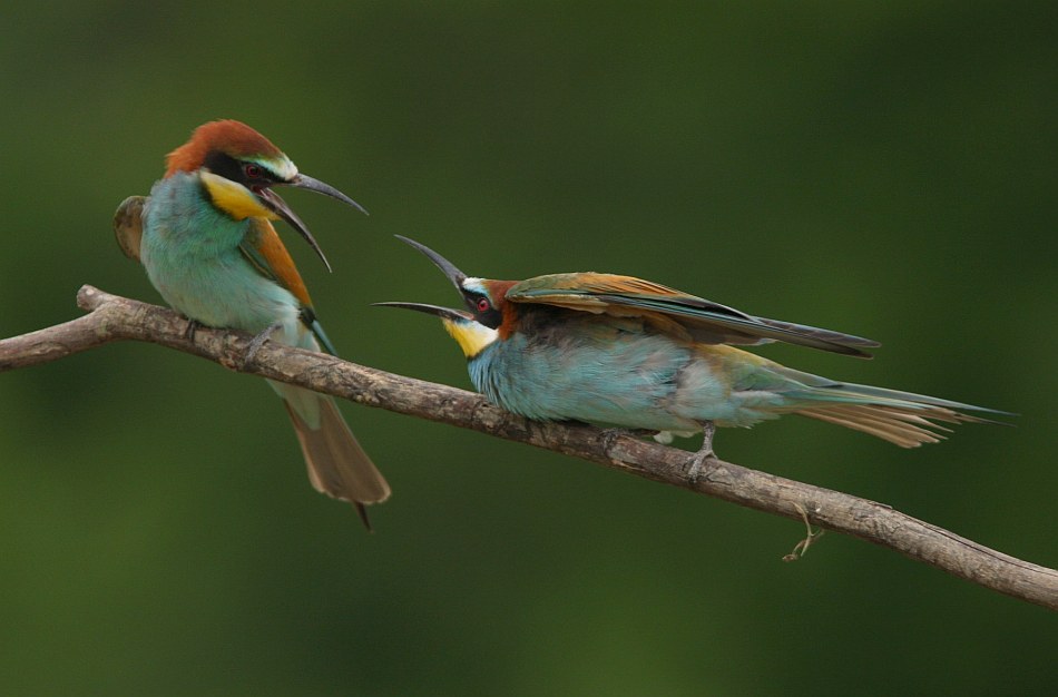 All about the Bee-eaters: copulation, fights, feeding the female Bee-eater from the male one.